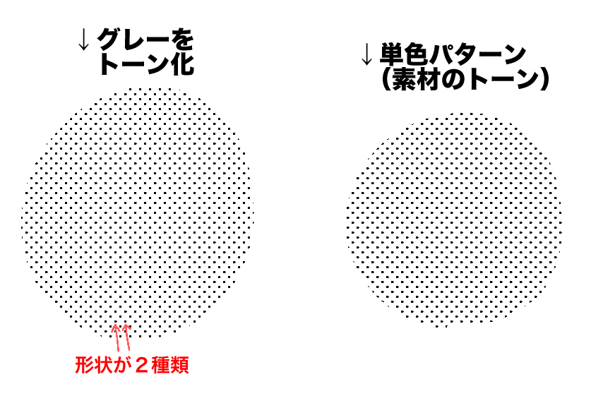 グレーをトーン変換した場合と最初からトーンを塗った場合の比較