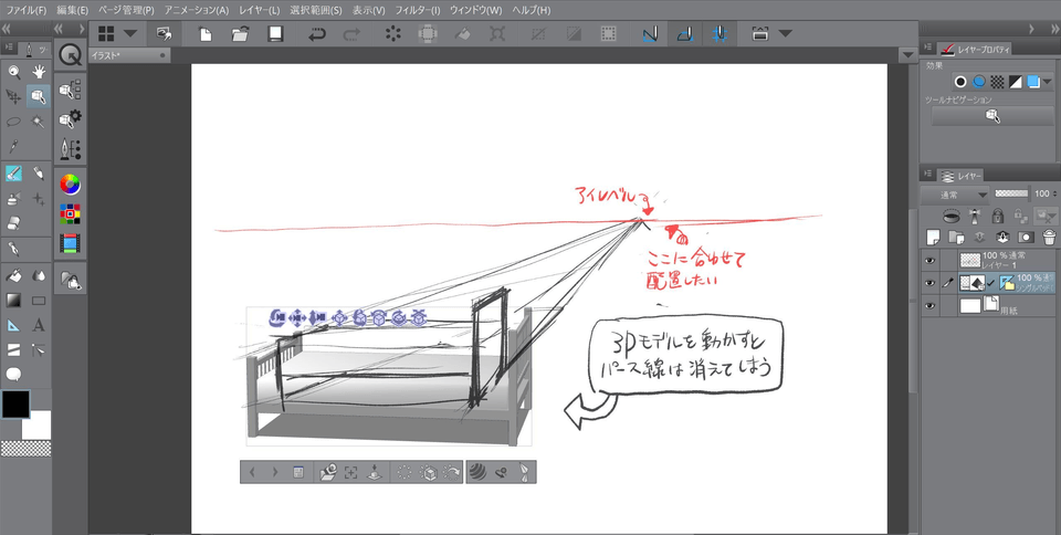 Clip Studio Paint 背景画に3dオブジェクト パース定規便利