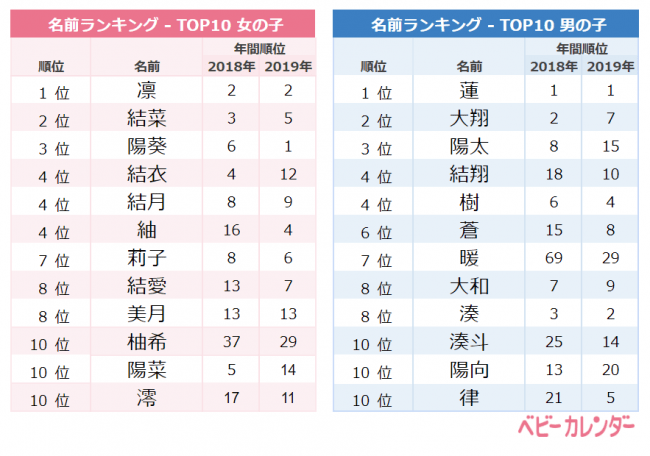 2019年 1月生まれベビーの名づけトレンド 発表 子 で終わる