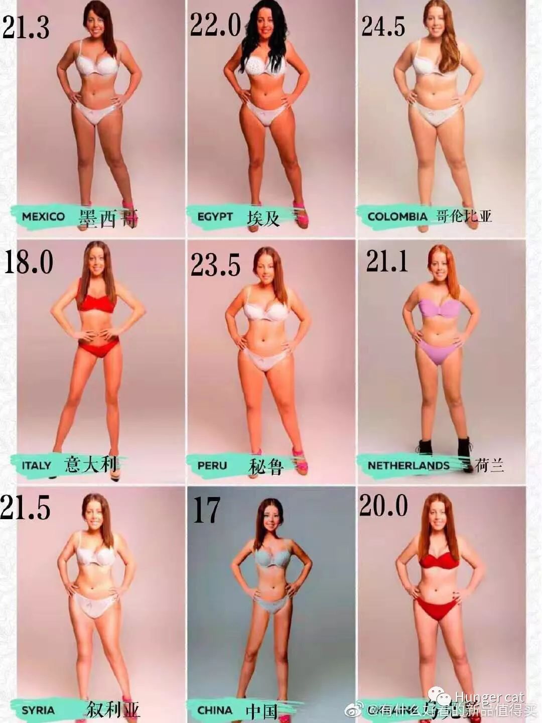 各国女生平均体脂率 中国女生逆哇 Hunger Cat 微信公众号文章