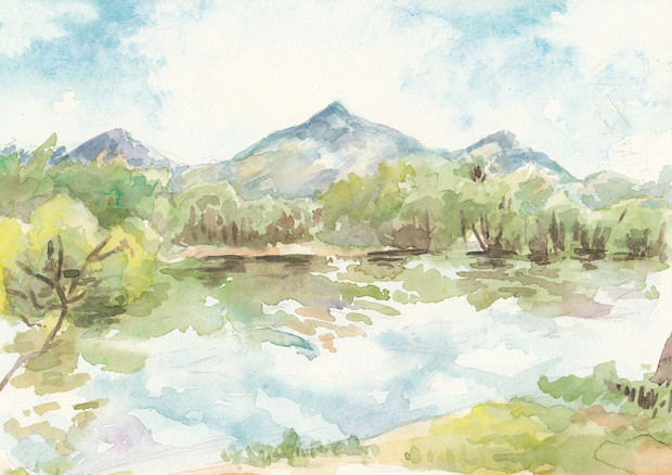 水のある風景 トレース水彩画 水彩風景 水彩風景画 風景