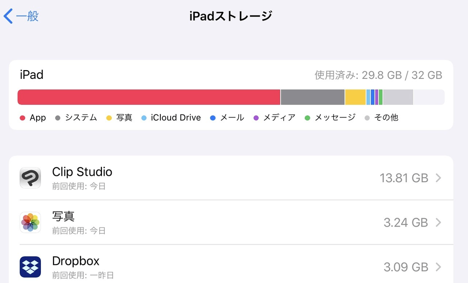 Ipad クリスタ 容量