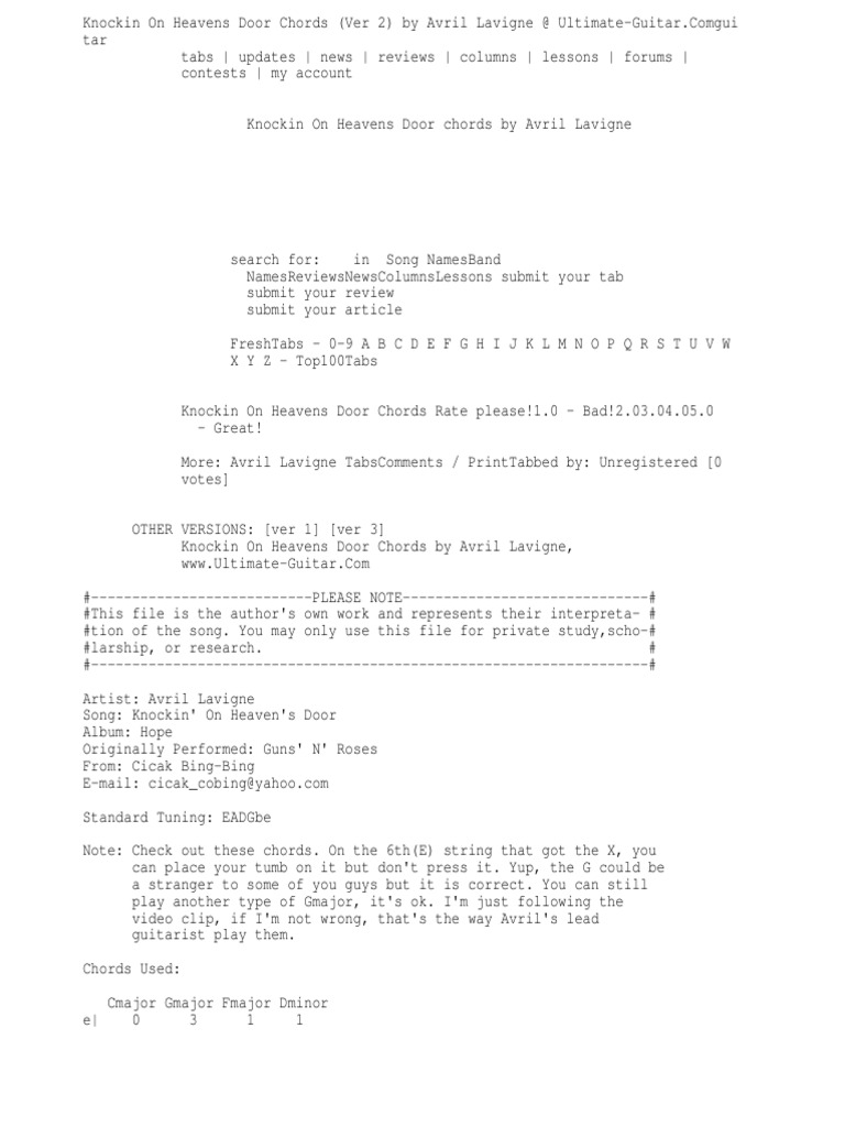 Knockin On Heavens Door Chords Ver 2 By Avril Lavigne Ultimate